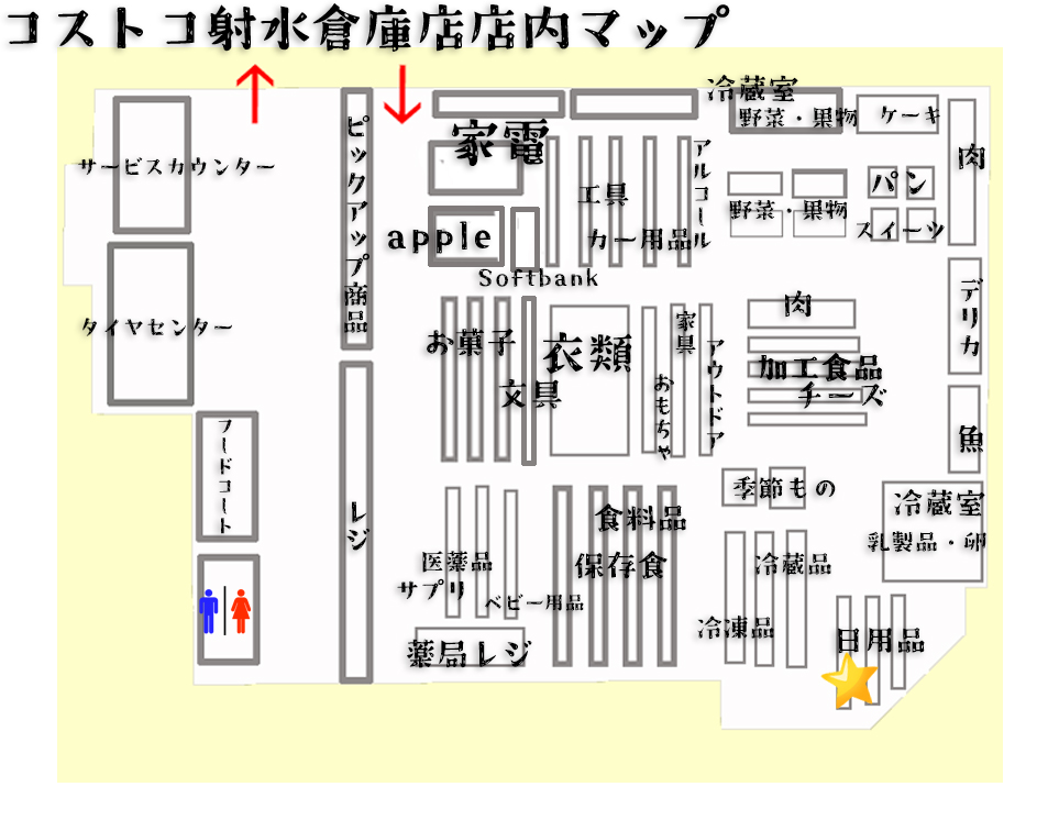 下記マップ★マークが売り場になりますが、店舗によっては異なると思うので参考程度にご覧ください。