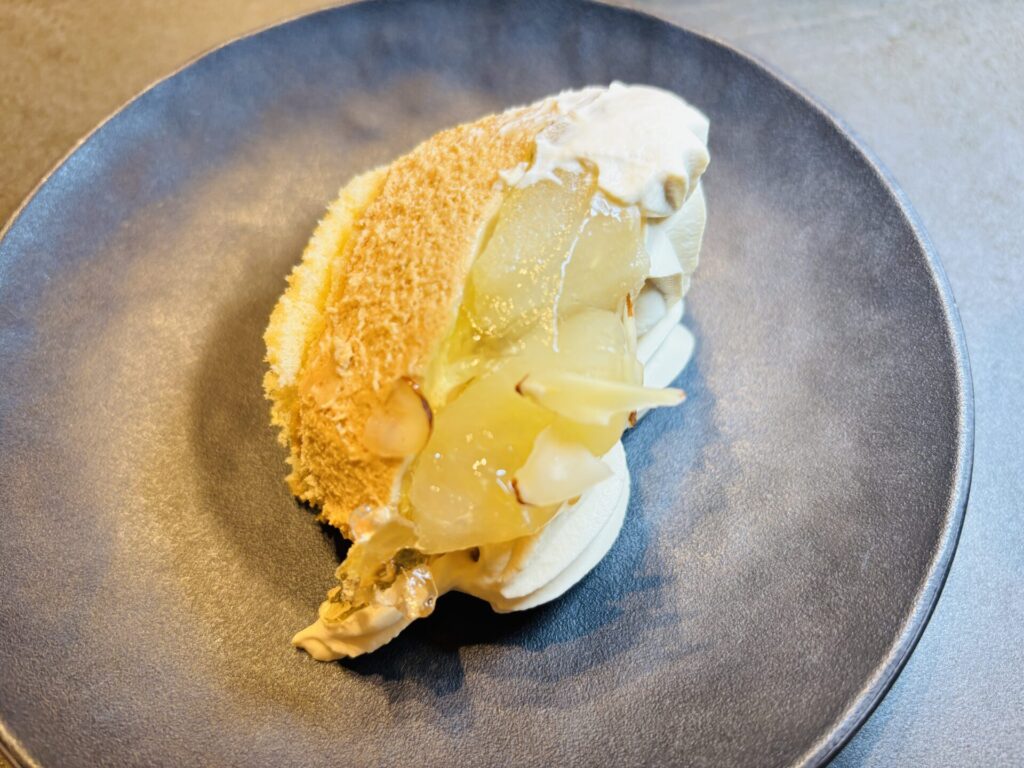 洋ナシはシャキシャキ感が残っており、甘みはあるもののキャラメルのほろ苦さと合わせるとまろやかになって美味しいです。