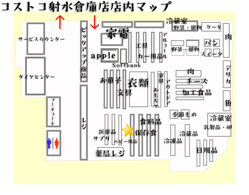 下記マップ★マークが売り場になりますが、店舗によっては異なると思うので参考程度にご覧ください。