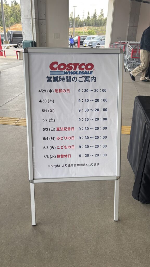 コストコ倉庫店でのゴールデンウィーク中の営業時間が公開されていました。
